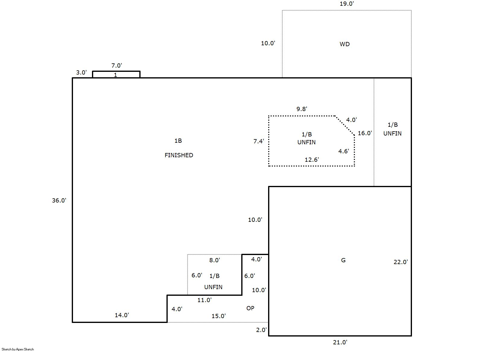 | 1 | Basement | Total Basement SF | 1296.00 |