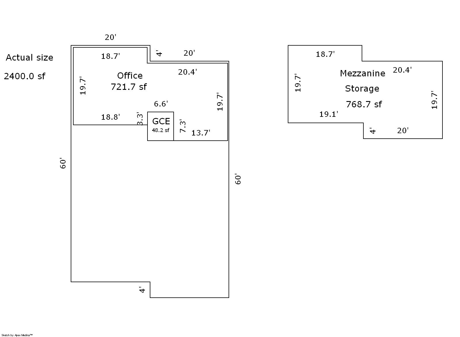 | 1 | Mezzanine | Storage | 766.00 |